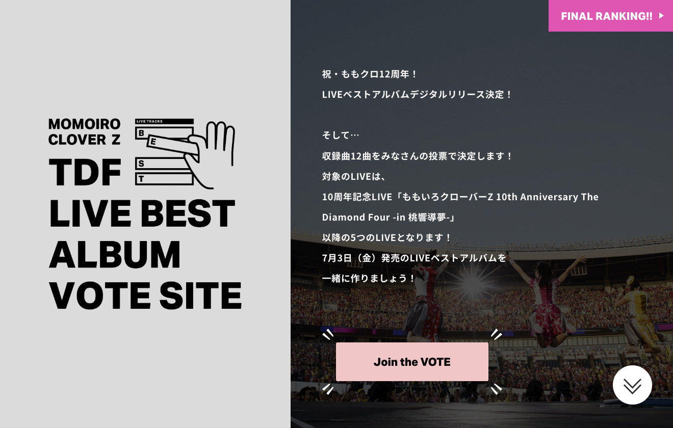 ももいろクローバーZ LIVE BEST ALBUM VOTE SITE Produce: GOONIE